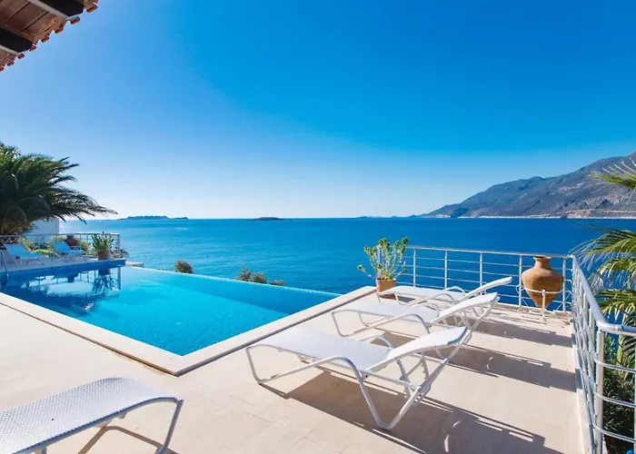 Kas Peninsula Seafront Villa - 1031は,ヴィラで,カシュのKas Peninsula地区に位置するインフィニティプ-ルを有しています. カシュの海辺のロケ-ションを楽しめるヴィラは,アクチャ ゲルメ プラジから2.1kmです.
